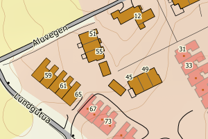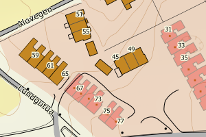 | Byggnr | Type | Endret dato | Bygningsstatus | Koordinater | FKB WMS |